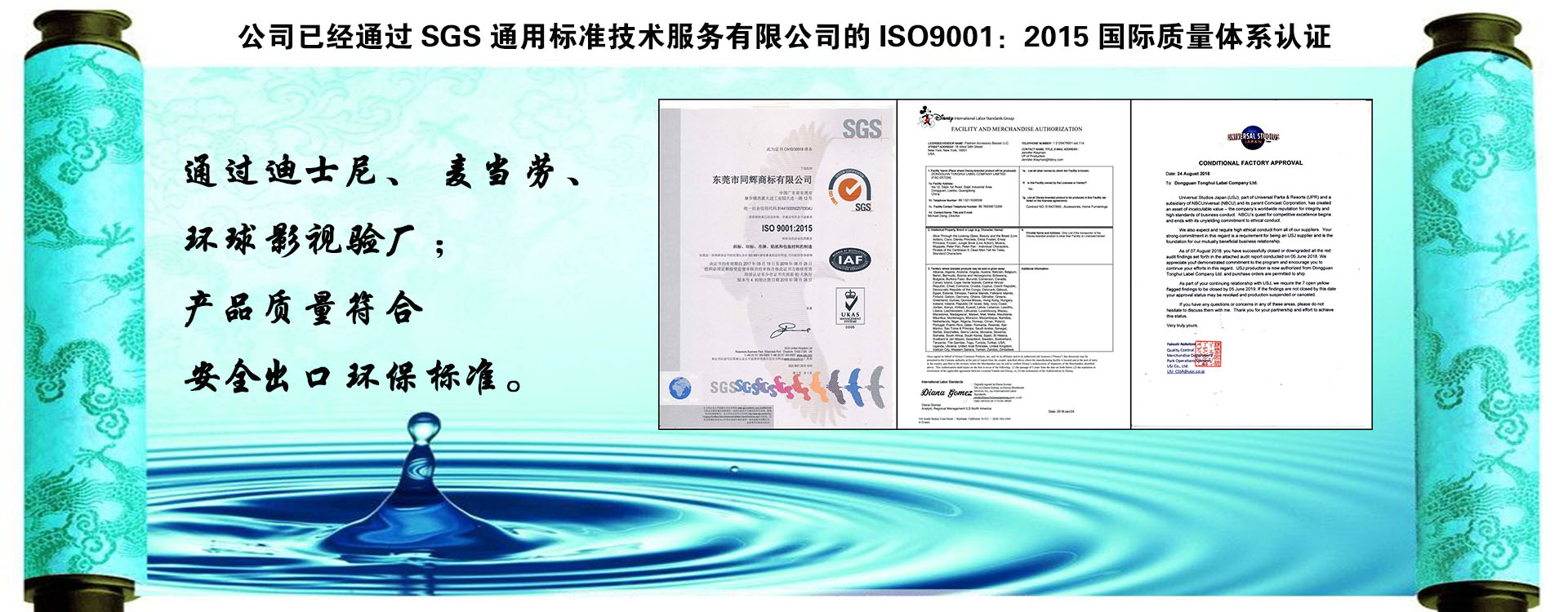 東莞市同輝商標(biāo)輔料及包裝印刷有限公司是一家專業(yè)從事商標(biāo)制造、包裝印刷的企業(yè),主營生產(chǎn)和銷售:各類織嘜商標(biāo),織章,印刷商標(biāo),印嘜,標(biāo)簽印刷,不干膠商標(biāo),絲印商標(biāo),熱轉(zhuǎn)印標(biāo),無感商標(biāo),燙嘜,皮牌商標(biāo),電壓商標(biāo)、商標(biāo)帶、繡花標(biāo),布貼標(biāo)、皮貼標(biāo)、商標(biāo)吊牌,彩卡,折盒等廣泛用于各行各業(yè)。工廠經(jīng)過多年的發(fā)展與開拓,規(guī)模日益發(fā)展壯大。從設(shè)計(jì)制作、工程研發(fā)、生產(chǎn)制造、產(chǎn)后加工、品檢、物流配送、售后服務(wù)等一套完整的優(yōu)質(zhì)服務(wù)體系,及優(yōu)秀的經(jīng)營管理團(tuán)隊(duì)。已通過SGS ISO9001:2008(新版是2015版)國際質(zhì)量體系認(rèn)證,產(chǎn)品質(zhì)量符合各國安全出口環(huán)保標(biāo)準(zhǔn)。承蒙國內(nèi)外客戶的大力支持,目前已有許多國際著名品牌定點(diǎn)授權(quán)我公司生產(chǎn),并是通過全球迪士尼FAMA認(rèn)證驗(yàn)廠,麥當(dāng)勞驗(yàn)廠,環(huán)球影視驗(yàn)廠的供應(yīng)商,是各行業(yè)值得信賴并具有實(shí)力的合作伙伴。